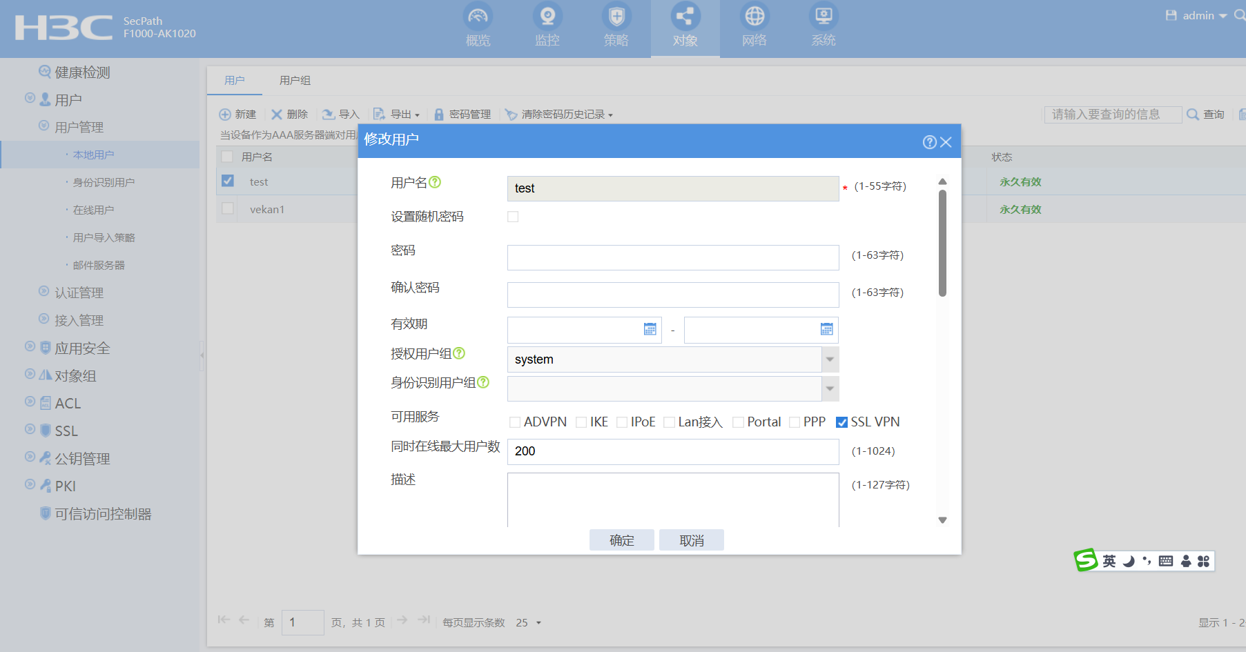 F1000-AK1020防火墙的SSL-VPN有人数限制吗?