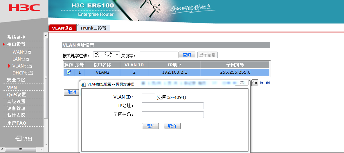 点击接口设置---vlan设置---新增: