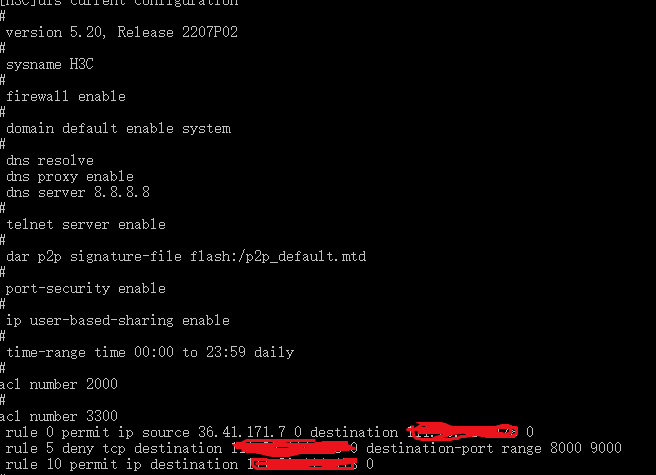 acl里面的destination应该配置成公网接口ip,其他配置没问题。还有就是可以确认下是不是运营商把8000端口封了导致不通,可以尝试换一下外网的端口号比如12000试一下