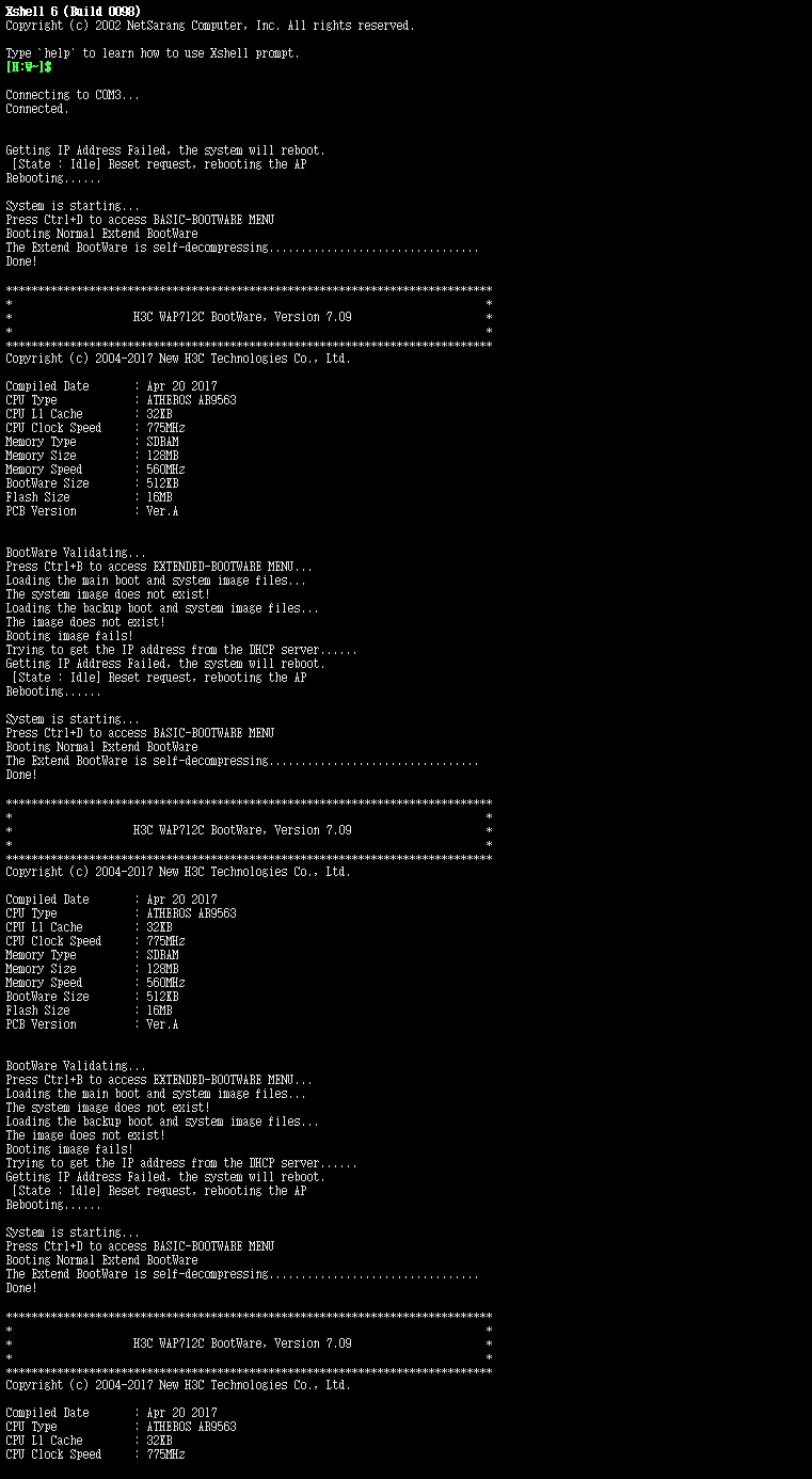 用xshell连接初始化是提示Getting IP Address Failed, the system will reboot. [State : Idle] Reset request, rebooting the AP Rebooting......