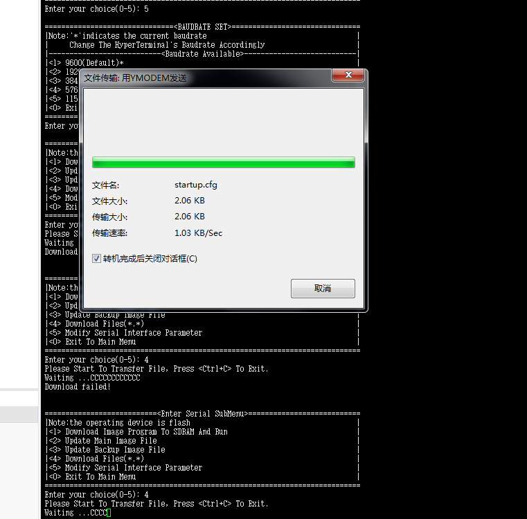 我也格式化过flash,但没效果,尝试用xshell自带那3个传输协议上传固件,但Z模式不行,Y模式传输完了,但一直不提示成功,实际flash里面也没有找到这个文件