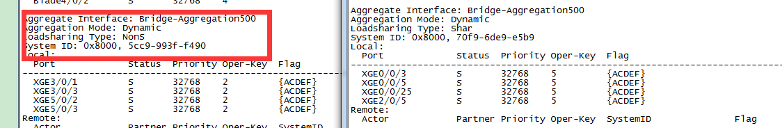 我想问一下,我这两台设备做端口聚合,其中一台的loadsharing模式为Share , 另一台为 Nons ,这是什么原因,为什么?