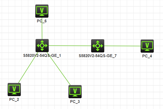 上图中交换机没有配置的情况下是可以通的。不通的时候看一下交换机上面接口是不是up的,是不是有stp把端口阻塞了,PC上面配置的地址和掩码是否正确。上述都没问题,可以看下终端是否有对面的arp,可以抓包看arp及icmp报文在哪一段停的。