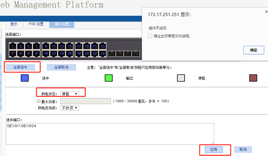 S5120-28P-POE-WiNet的POE供电无效,接口配置poe enable也提示操作不成功,