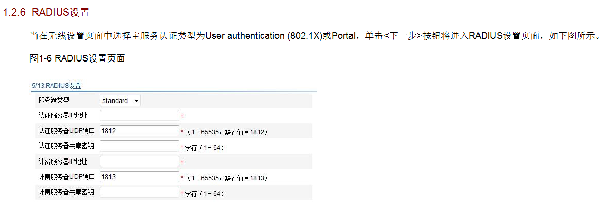 在快速配置中,根据指导手册做 radius 的配置(如后面那张图),填入FreeRadius server 的 IP 地址.