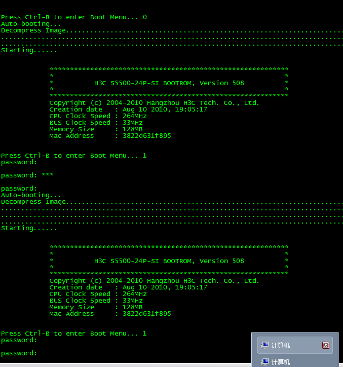 请看图,真的有密码!回车是提示错误的,3次就重起了!