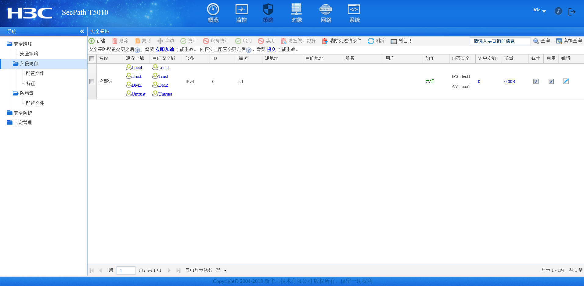 请问各位大佬有没有IPS T5010的旁路部署配置案例,入侵防御、防病毒的具体配置。官网的案例比较老,这个web界面和新的防火墙一模一样,