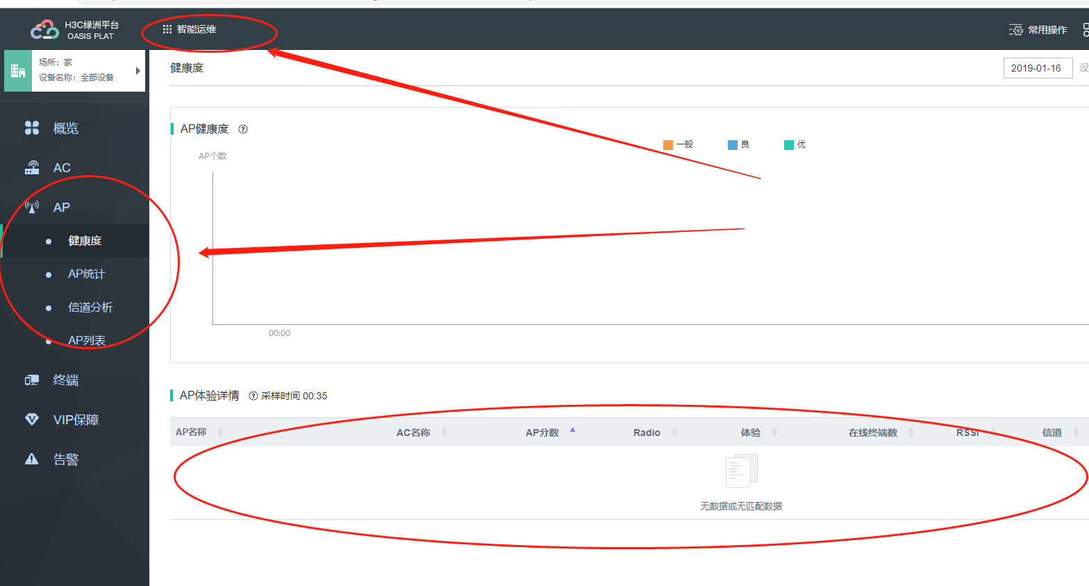 绿洲平台中 智能运维 没有AP及终端信息;(第二张图)