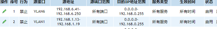 看描述稍微有点混乱,需求是让vlan 6里面的终端无法访问外网吗?如果是这个需求,目的地址应该是外网地址才对。