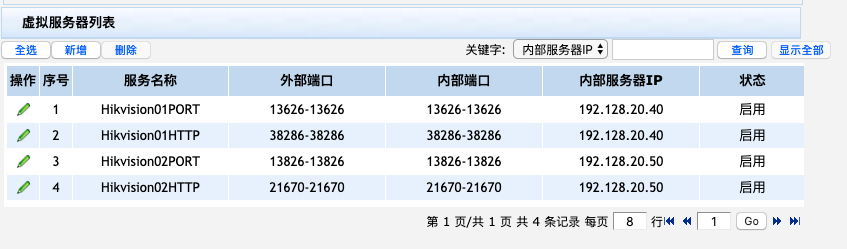 那么要增加内部服务映射的话 应该要在那一个板面增加 应该是要增加4个端口的(2个手机用的端口和2个网页用的)