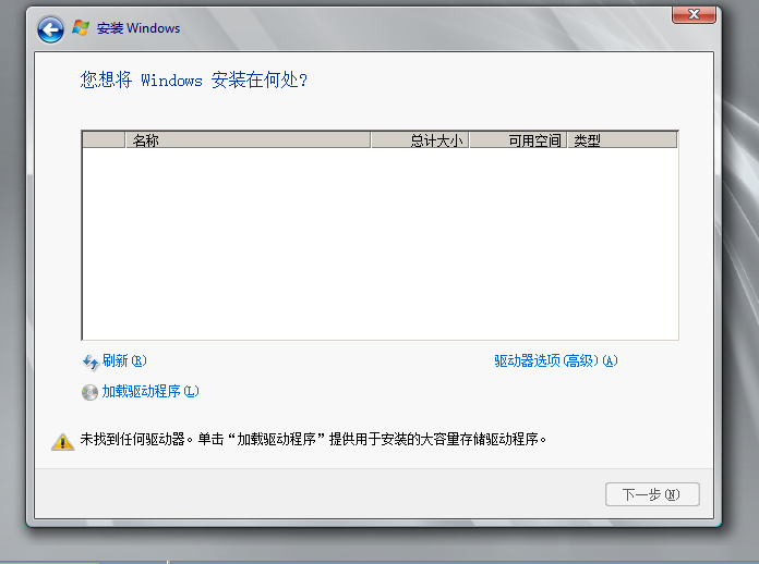 在cas3.0版本中,添加windows server2008R2镜像后,安装时没有发现添加的500G硬盘。这个接下来是要如何操作呢?
