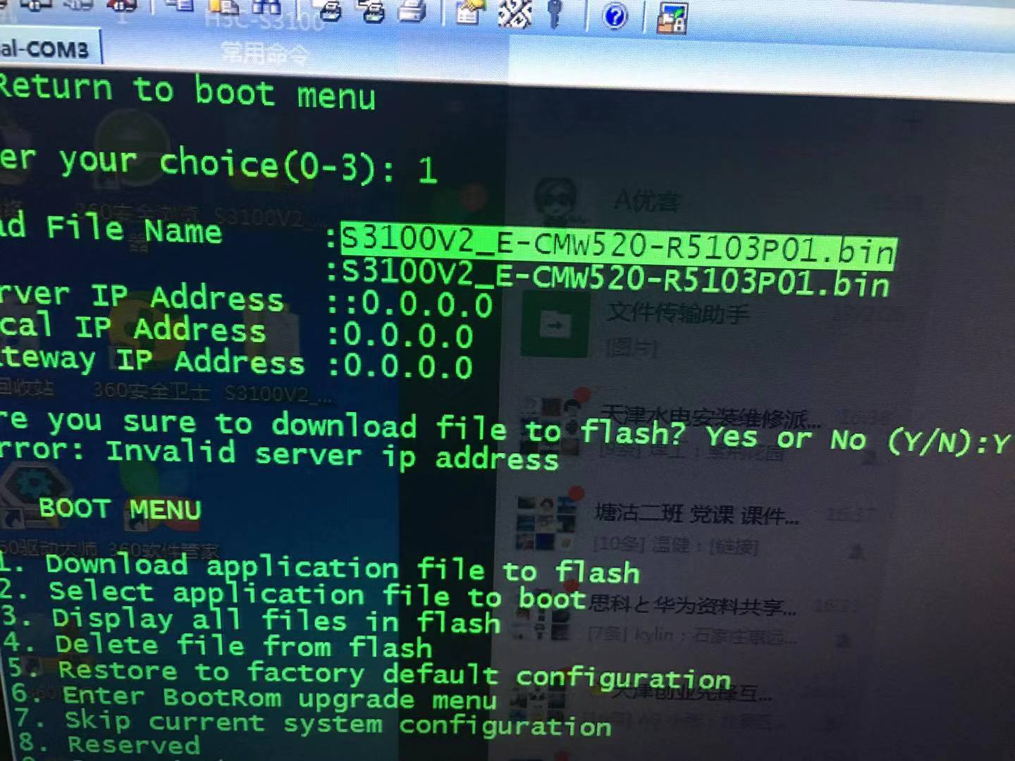 server ip为电脑网卡ip,local ip随意(与电脑ip同网段即可),将版本文件放到tftp软件设置的路径下