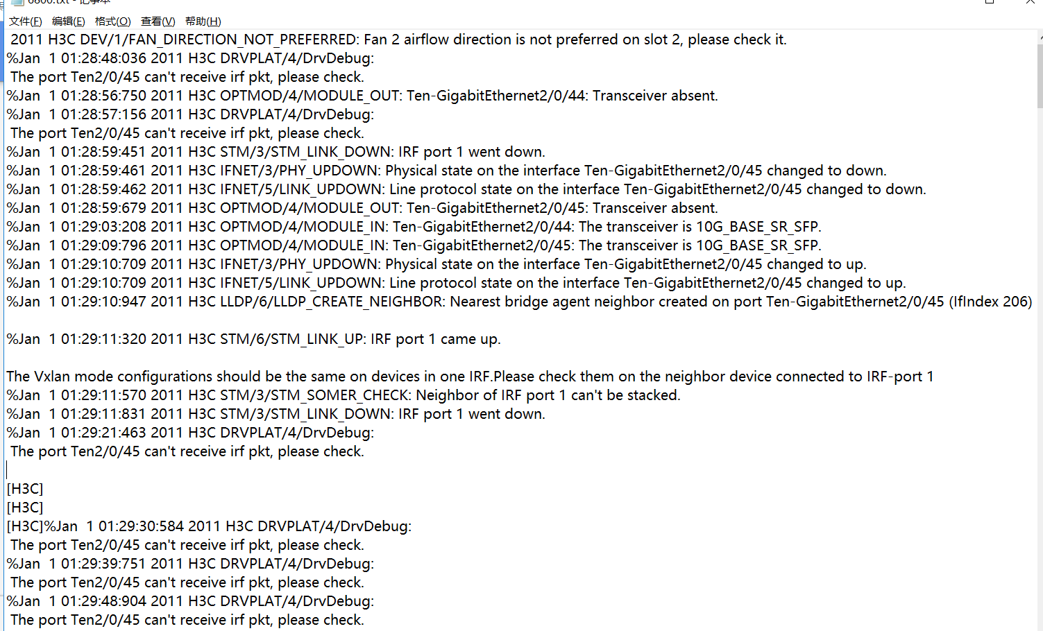 IRF问题是没有收到对端的数据,先检查下堆叠线有没有问题,比如堆叠前先两台设备通过堆叠线互Ping一下。