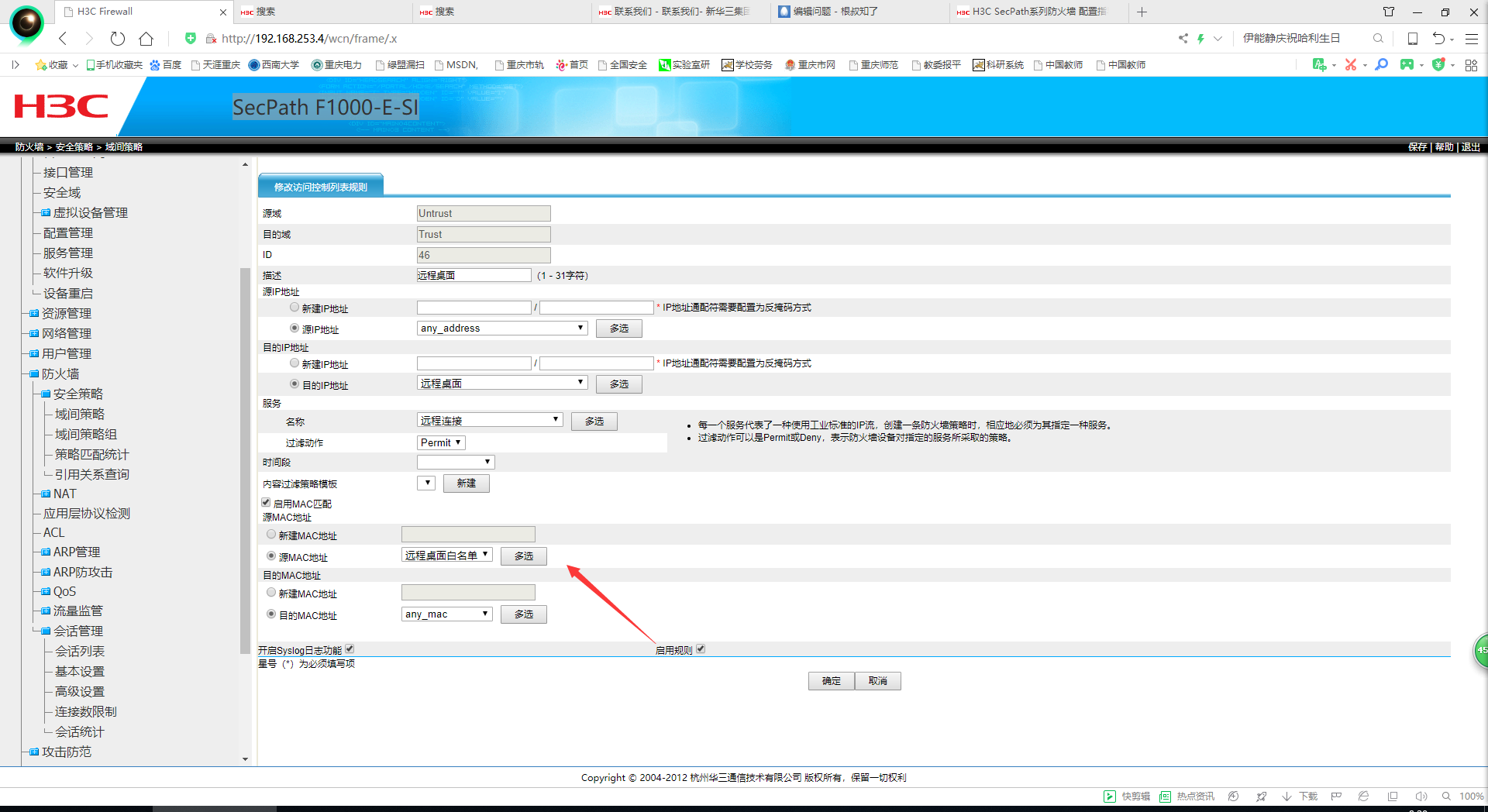 SecPath F1000-E-SI 启用MAC匹配后,所有用户都不能访问了。