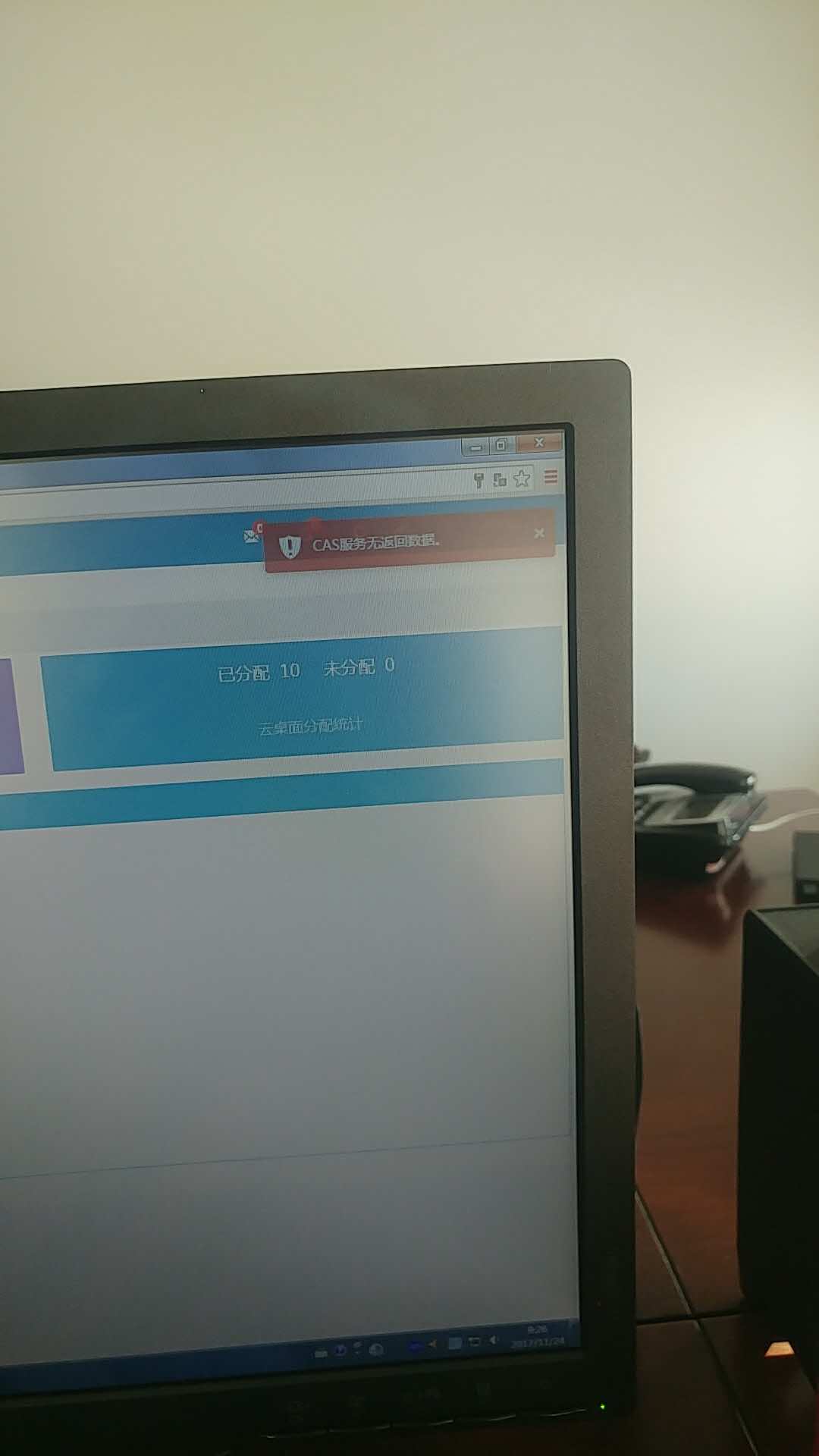 登录WEB页面在右上角提示cas服务无返回数据