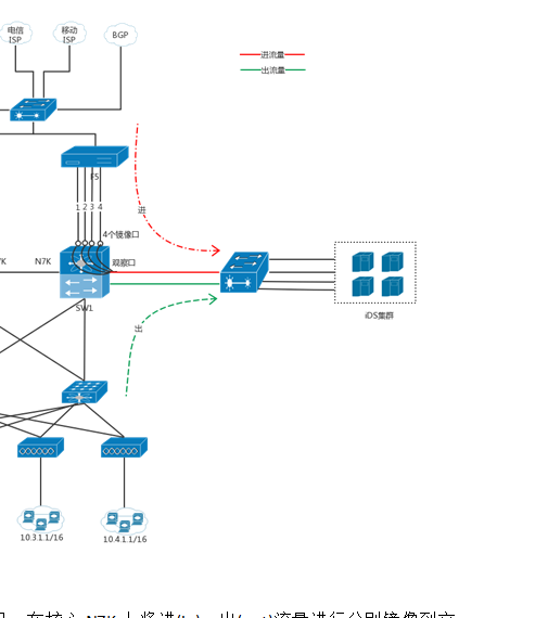 从外网访问内网服务器其流量(Rx流量)一台交换机的一个接口上,从内网访问外网流量(Tx流量)镜像到交换机的另一个接口上。然后在交换机上利用qos对镜像的流量进行分流和重组。