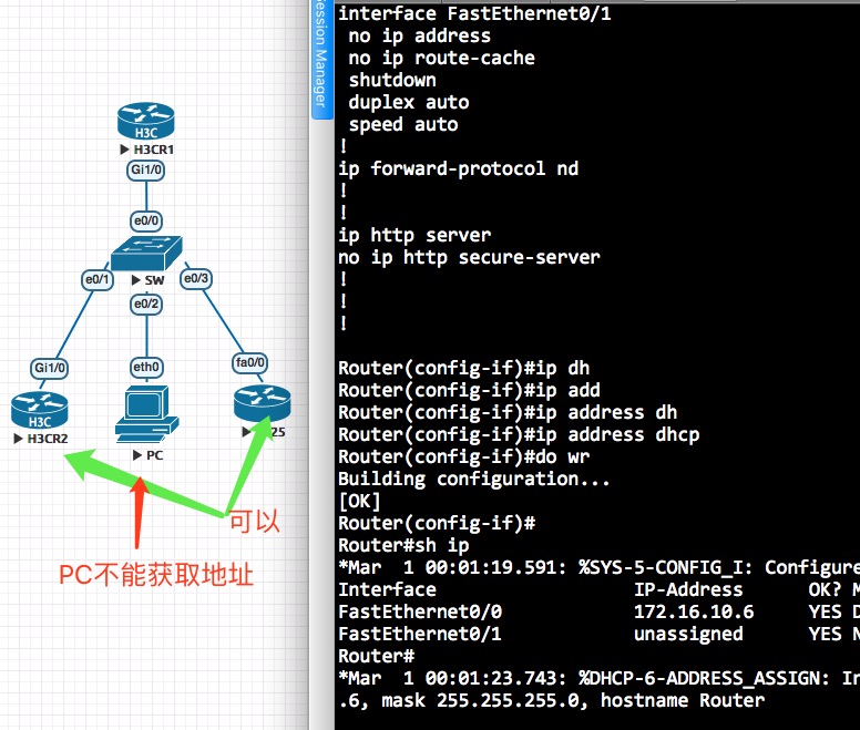 我是个初学者,我安装的模拟器是EVE-NG,加载了H3C的SR2000镜像,当我配置好DHCP后,用VPC是不能获得DHCP分配的IP地址,面用其它路由器是正常的。不知道是不是eve-ng的问题。