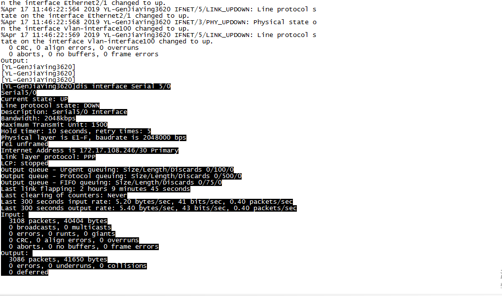 MSR3620调试ppp模块链路协议不通。