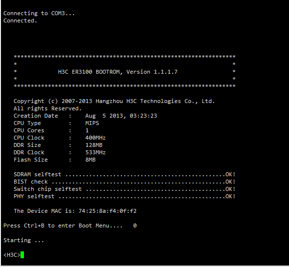 ER3100 启动失败,console口输入ctrl+b无响应,输入字符也无响应