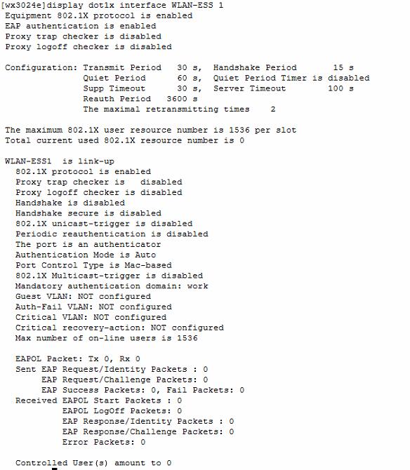 *Apr 25 11:03:04:912 2019 wx3024e 8021X/7/EVENT: Port:WLAN-DBSS1:179,Auth:17,Authenticator is freed.