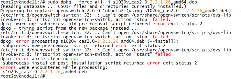 casE0303直接部署单台S1020V: 1. 安装软件包 (1) 登录CVK主机的命令行界面 在H3C CAS系统中使用单台安装方式安装S1020V,需通过CVK主机的命令行界面进行。因此请先登录CVK主机的命令行界面。 (2) 通过命令./ s1020v_cas_upgrade.sh.x filename运行脚本文件可安装S1020V软件包,其中,filename为S1020V的软件包名称。 root@cvmnode1:/home# ./s1020v_cas_upgrade.sh.x s1020v_cas5.0-4.14.0-generic-3.2.1.21-x86_64.deb Log time: 2019-01-15 17:13:52 Runing on CAS5.0 Current host is a CVK, upgrade the CVK. …略… 2. 验证安装效果 H3C CAS系统重启成功以后,请登录CVK主机的命令行界面,通过以下方式验证安装效果: (1) 通过ps -A命令查看系统中已经启动的服务。如果ovsdb-server服务和ovs-vswitchd服务已经启动,表示S1020V的服务已经正常启动。 root@cvknode1:~# ps -A | grep ovs 1453 ? 00:00:00 ovs_workq 2050 ? 00:00:00 ovsdb-server 2060 ? 00:00:00 ovs-vswitchd (2) 通过ovs-vsctl -V命令查看S1020V的版本号。 root@cvknode1:~# ovs-vsctl -V H3C S1020V, Version R2209 Compiled Dec 31 2014 23:08:31