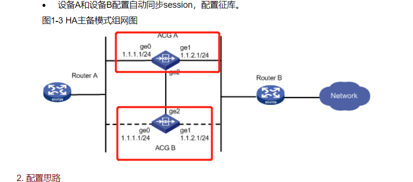 官网有ACG 主备路由模式配置案例,两台ACG配置一样的地址,如果是主主模式呢,两台ACG也是配置一样的地址吗?