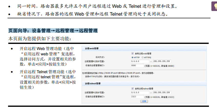 您的需求时希望异地远程管理这台路由器的话,不需要映射,直接 页面向导:设备管理→远程管理→远程管理。里面有http和https两种可选的远程web网管,打开其功能后输入自定义端口号,并输入可允许访问的ip地址(不确定的情况输入0.0.0.0--255.255.255.255以放通所有)。