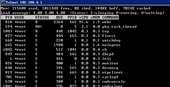 使用top查看是否webs进程存在,如果存在的话是否webs进程CPU利用率很高。