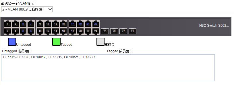 如上图所示,端口5,6,7,8,17,19,21,22在同一个Vlan下