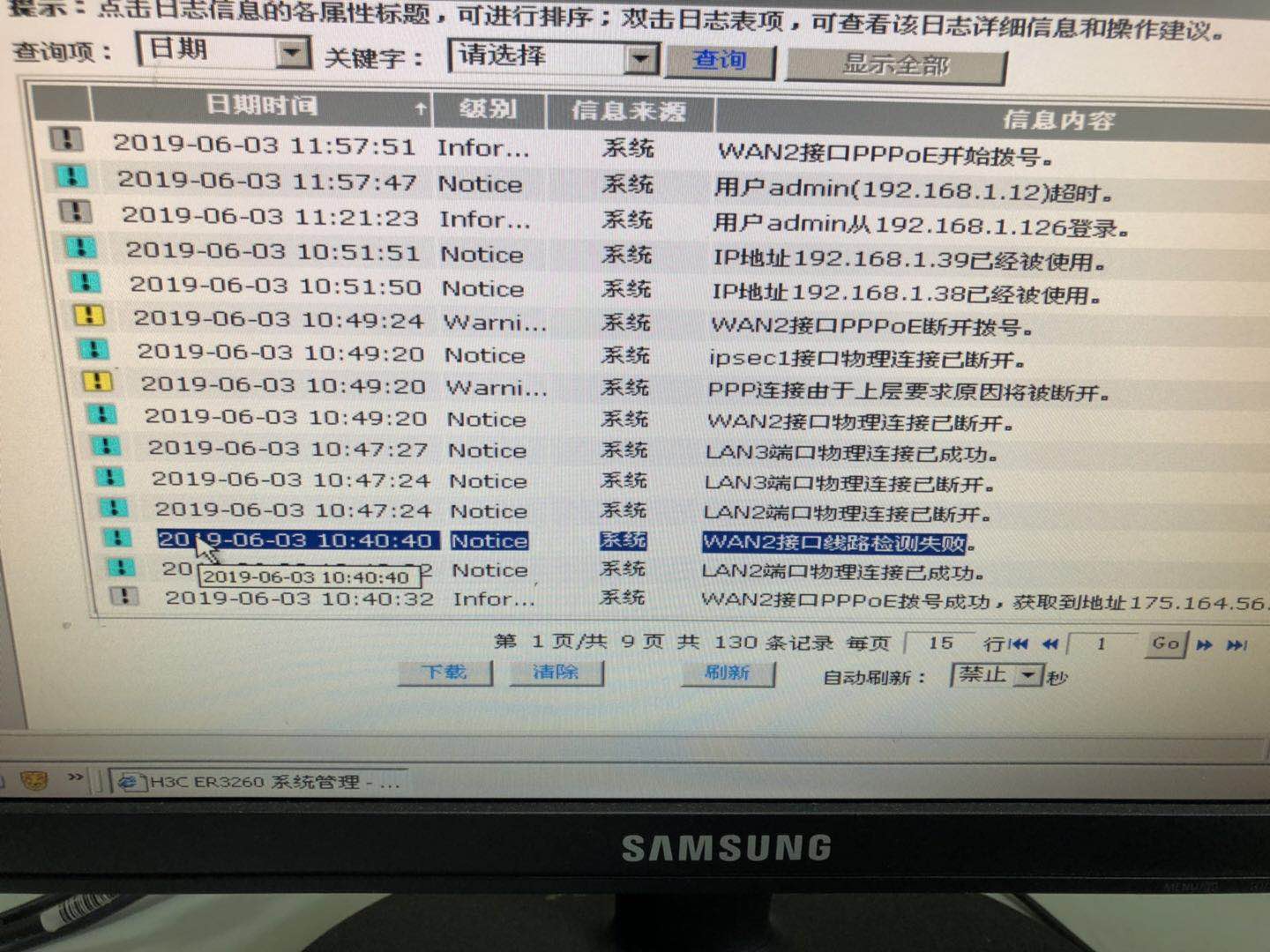 线路检测失败,建议您在路由器上ping一下公网是否能ping通