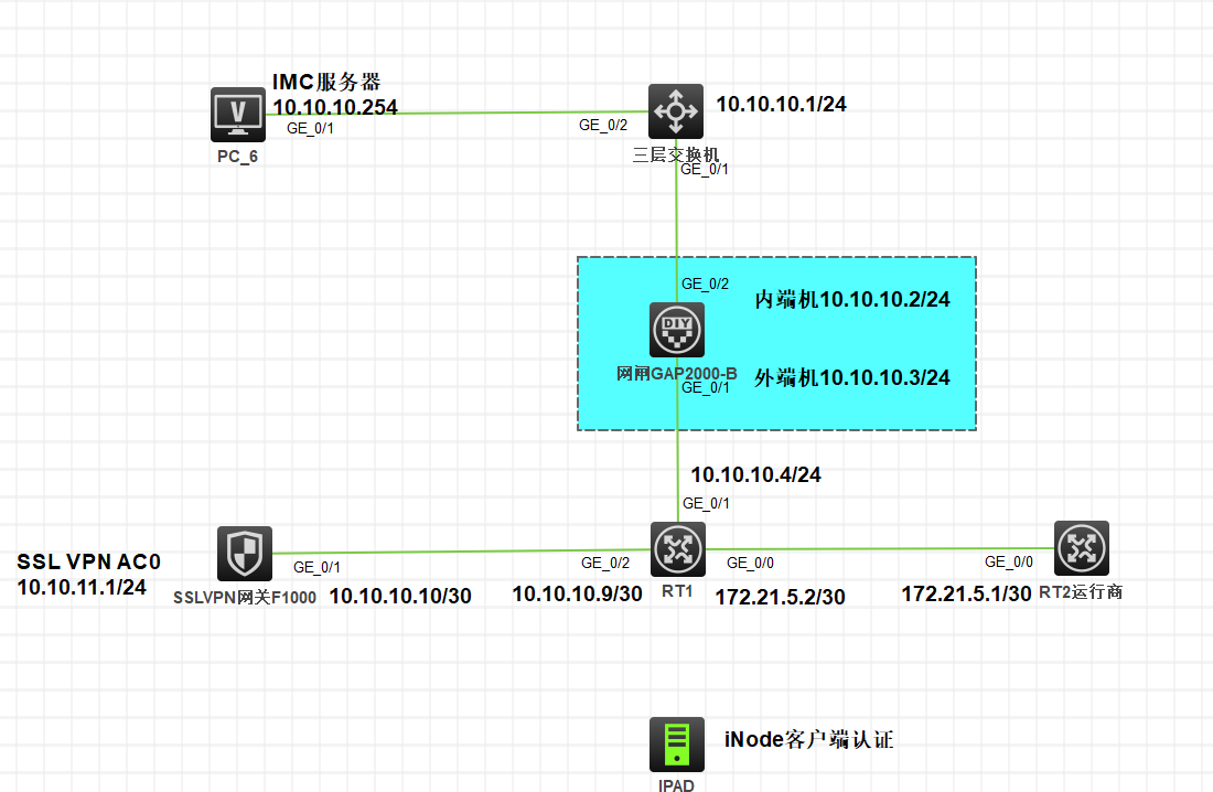 1,在不要网闸的时候 ,F1000 通过IMC服务器认证,IPAD 通过 iNode客户端认证 是正常的 ,能获取到地址 能正常访问服务器