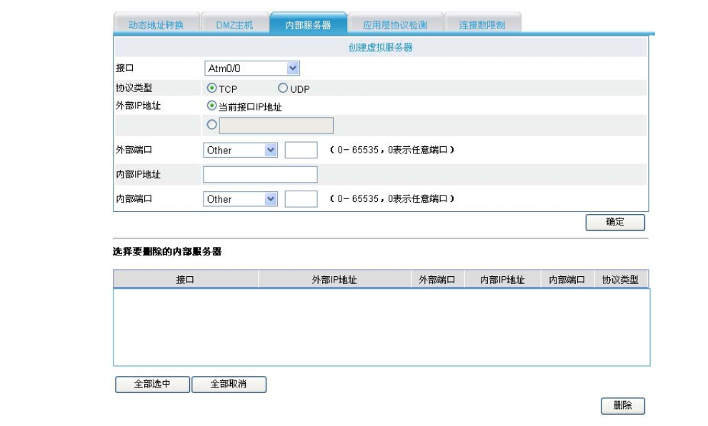 1、web页面(在左侧找到NAT配置--->内部服务器配置,具体如图):