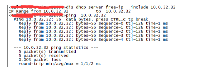 如图,已分配的ip地址,出现在free-ip表里,非常确认使用这个ip的设备启用了DHCP,设备版本:H3C 12508 Version 5.20, Release 1825P01