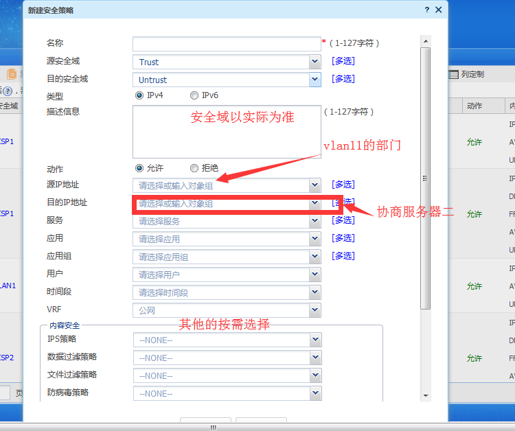 请参考如下图的安全策略: