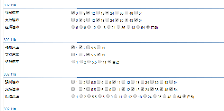 目前关闭了低速率,但是这个强制速率用再多选几个吗?80211.g这个