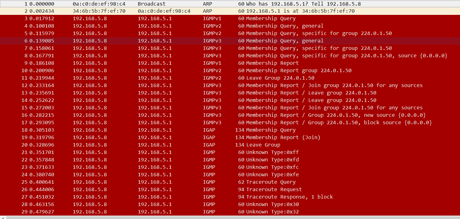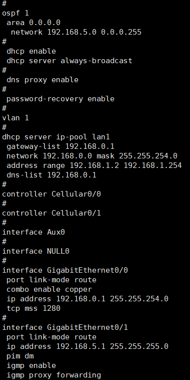 我手上有一台MSR36-10的路由器,想实现和设备互通,但是一直都无法互通,抓包显示路由设备没回应,OSPF和PIM-DM都能互通,但是互通IGMP的时候就不行了~不知道是哪里配置错了,求指点。下图是我路由器的配置,1口连接设备。再下面是抓包的图