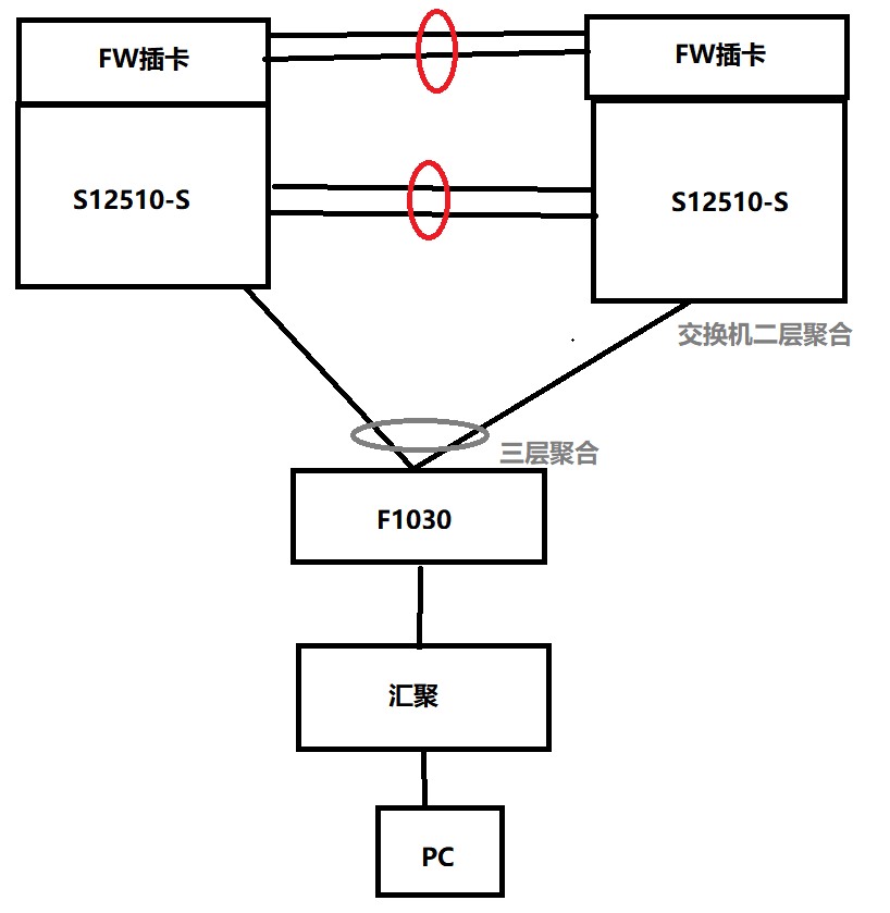 当F1030防火墙与S12510-S交换使用单链路(无链路聚合)时,其中核心是内部网络的网关,PC访问内部网络的走向是从S12510-S交换机到FW插卡再到核心交换机。单链路时业务访问正常。