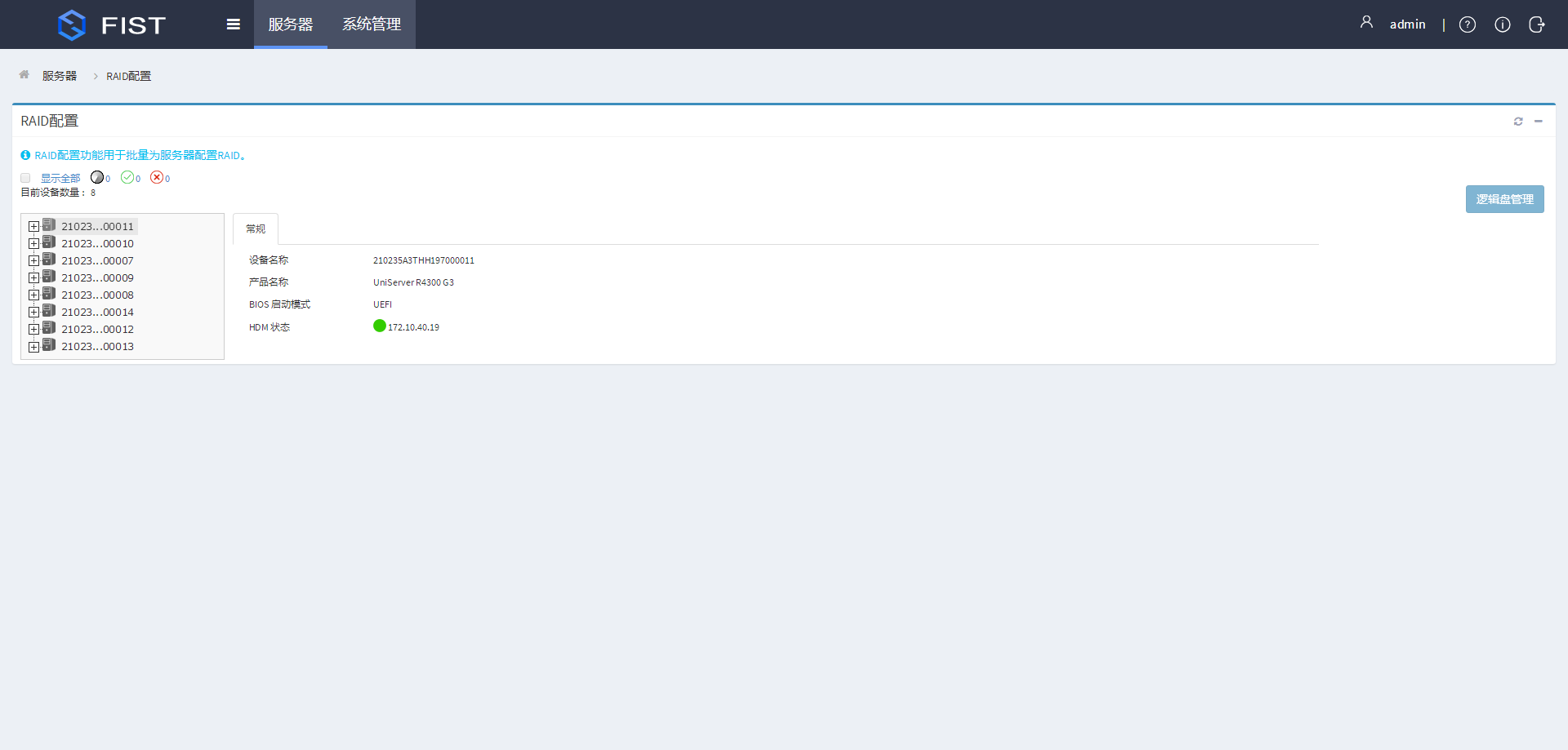需要看具体配置的是什么阵列卡,以及FIST的具体版本,不是所有的卡都支持批量配置的.
