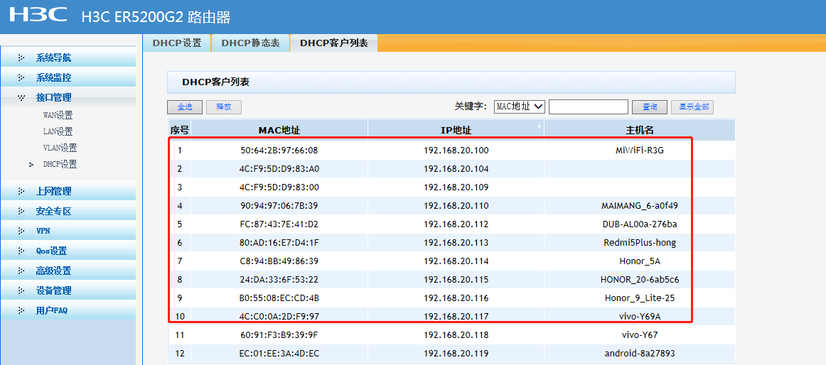问题1:接口管理-DHCP控制-DHCP客户列表-把不需要上网的IP释放掉后,为什么释后后的IP 还能上网,