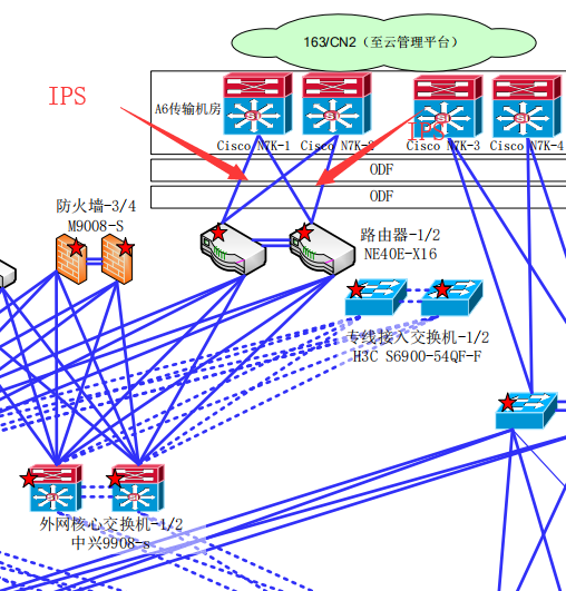 在现有网络中串接IPS,实现IPS所有功能,保证进入和出去的包都经过同一台IPS.