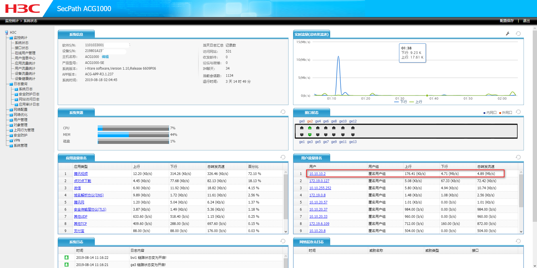 ACG1000-SE找到流量占用高的用户样对他进行限速
