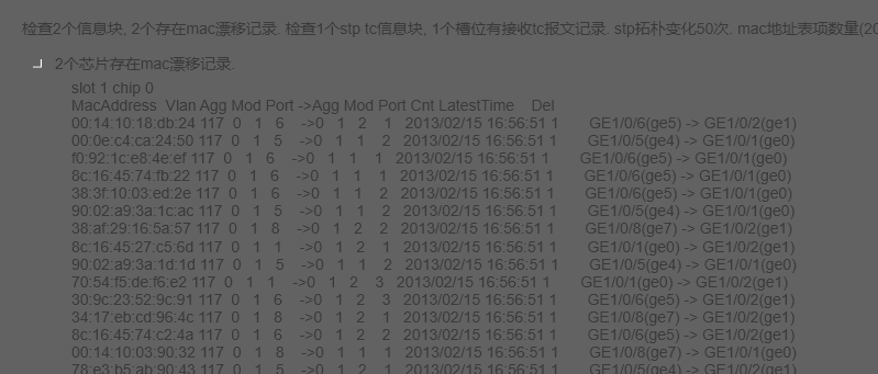 意思是:对应mac在这两个物理接口上交替学习到,这两个接口的对应vlan中存在环路。