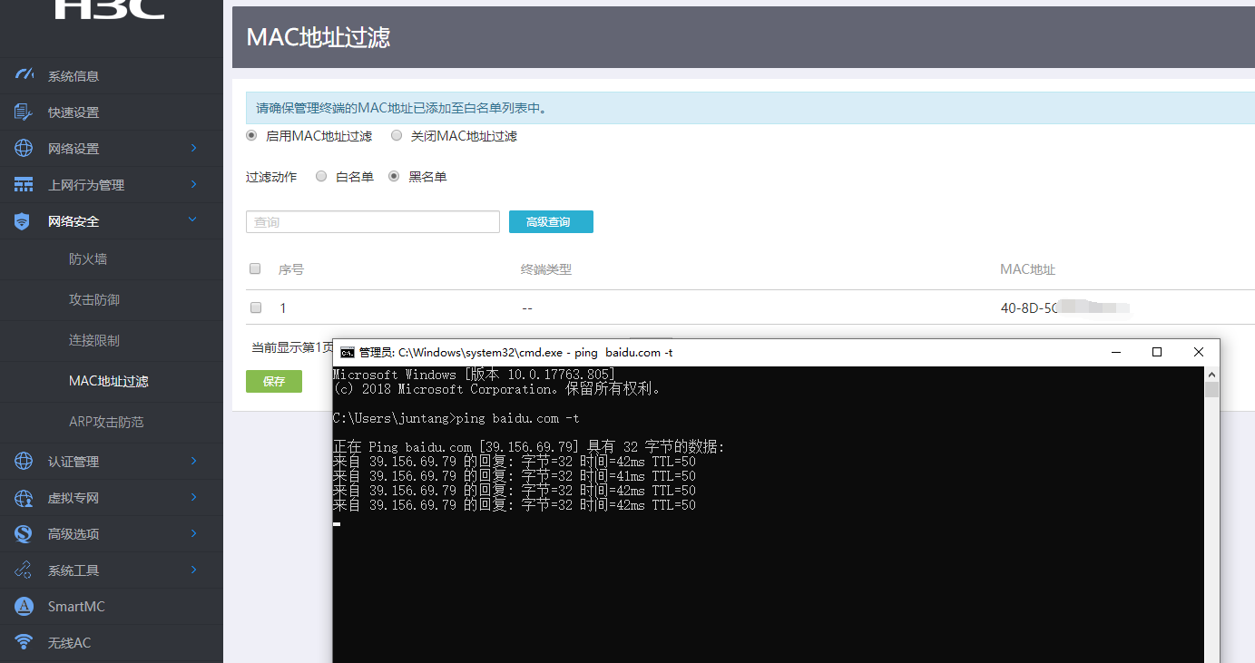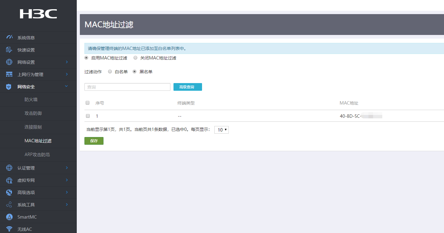 上周买了一个MSR36-40,需要用到MAC地址过滤,因为部分电脑不允许上网,但是我做了,发现无效