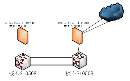 H3C SecBlade II 防火墙插卡能否配置一边插卡允许2台核心交换机流量通过。拓扑如下图,只连接右边的防火墙插卡,能否把整个内网配通。