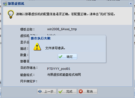 有几个模板都无法部署,CAS平台上面有十几台的虚拟机也是正常的。我从后台去看了模板的存储位置,和存储空间也都是正常的。所以感到很奇怪