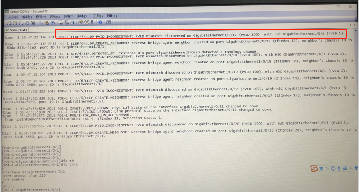 H3C 5120V2-28P-PWR-LI POE交换机调试的时候提示如图所示各种信息,都是什么原因导致的?有什么影响?应该如何解决呢?麻烦给分析下谢谢!