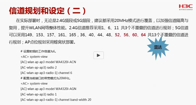 如图片所言,强烈推荐:无线网络在实际部署时,无论是2.4G频段或5G频段,建议都采用20MHz模式进行覆盖,以加强信道隔离与复用,提升WLAN网络整体性能。(注意:我司AP802.11an 5G频段默认为40MHz频宽方式,802.11AC 5G频段默认为80MHz频宽方式)