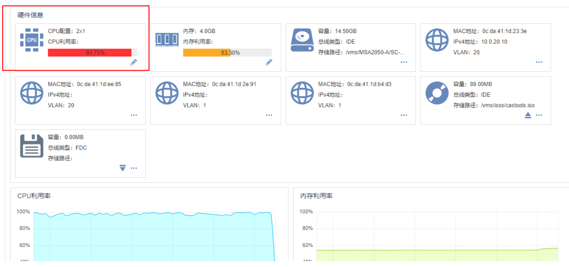 到虚拟机内部查一下是什么进程占用较多cpu资源,确认是真的被占用还是显示有问题