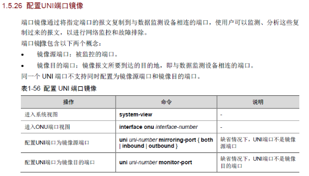 [S7502E-Onu2/0/1:1] uni 1 mirroring-port inbound //配置ONU的本地镜像源端口为UNI 1端口,镜像方向为入方向。
