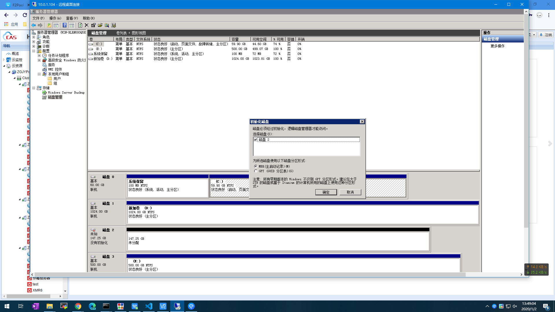 问题二:147.25GB那个存储卷是精简模式的存储卷,但是我附加在虚拟机,无法正常识别和打开这个存储卷。500GB的普通存储卷,附件在虚拟里可以正常识别。见下图。
